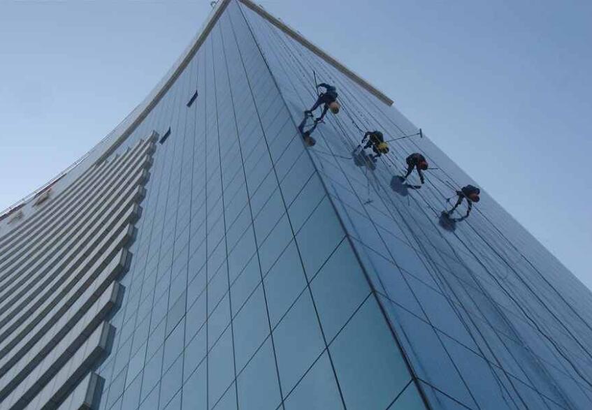 外(wài)牆(qiáng)清洗一般指城市高層建(jiàn)築物外立麵清洗,與高層外牆粉刷,高空外牆廣告安裝拆除等都屬於高空(kōng)作業範(fàn)疇,也是清洗公司、家政公司常項(xiàng)服務.目前開荒保潔一般采用坐(zuò)式高(gāo)空吊板清洗方式(shì),這種方(fāng)式比較簡(jiǎn)單(dān),成本(běn)也低,隻要工人身體素質好、繩子連接牢固就可以進行,一般(bān)的大樓都可以用這種方式進行清洗,但是這種方(fāng)式的操作必須使安(ān)全措施到位,否則危險性很大,造成傷亡事故的都是因安全措施不(bú)到位造成的.因為高層(céng)外牆清洗存(cún)在著危險性和複雜性,所(suǒ)以這項工(gōng)作有著相當程度的科(kē)學性和專業性.首先要根據施(shī)工現場情況和環境製定詳實的施工方案,遵循外牆清洗先決條件,嚴格執行外(wài)牆清洗安全操作規程(chéng),確保工程安全做到萬無一失,下麵來看(kàn)看外牆清洗條件和安全(quán)操(cāo)作(zuò)規程: