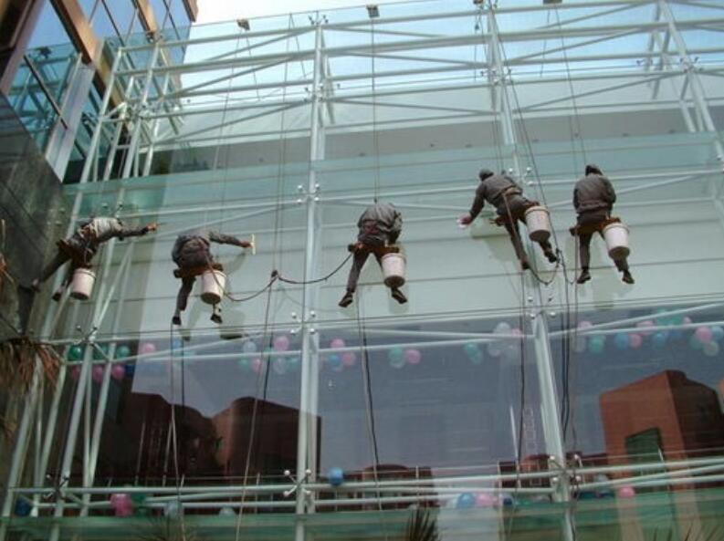 2、吊篮方式:在楼顶(dǐng)架设吊篮将工人运送到(dào)指定位置进行施工操作。此施工方式清洗效率较低,成本较高。